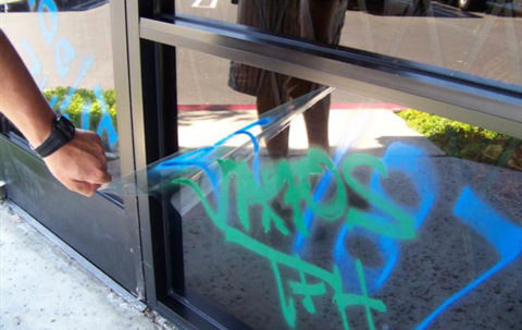 - La película anti grafiti está especialmente diseñada para proveer una superficie, que puede reducir o eliminar la necesidad del costoso remplazo de vidrios. El simple remplazo de un cristal puede exceder considerablemente el costo de la instalación de la película.